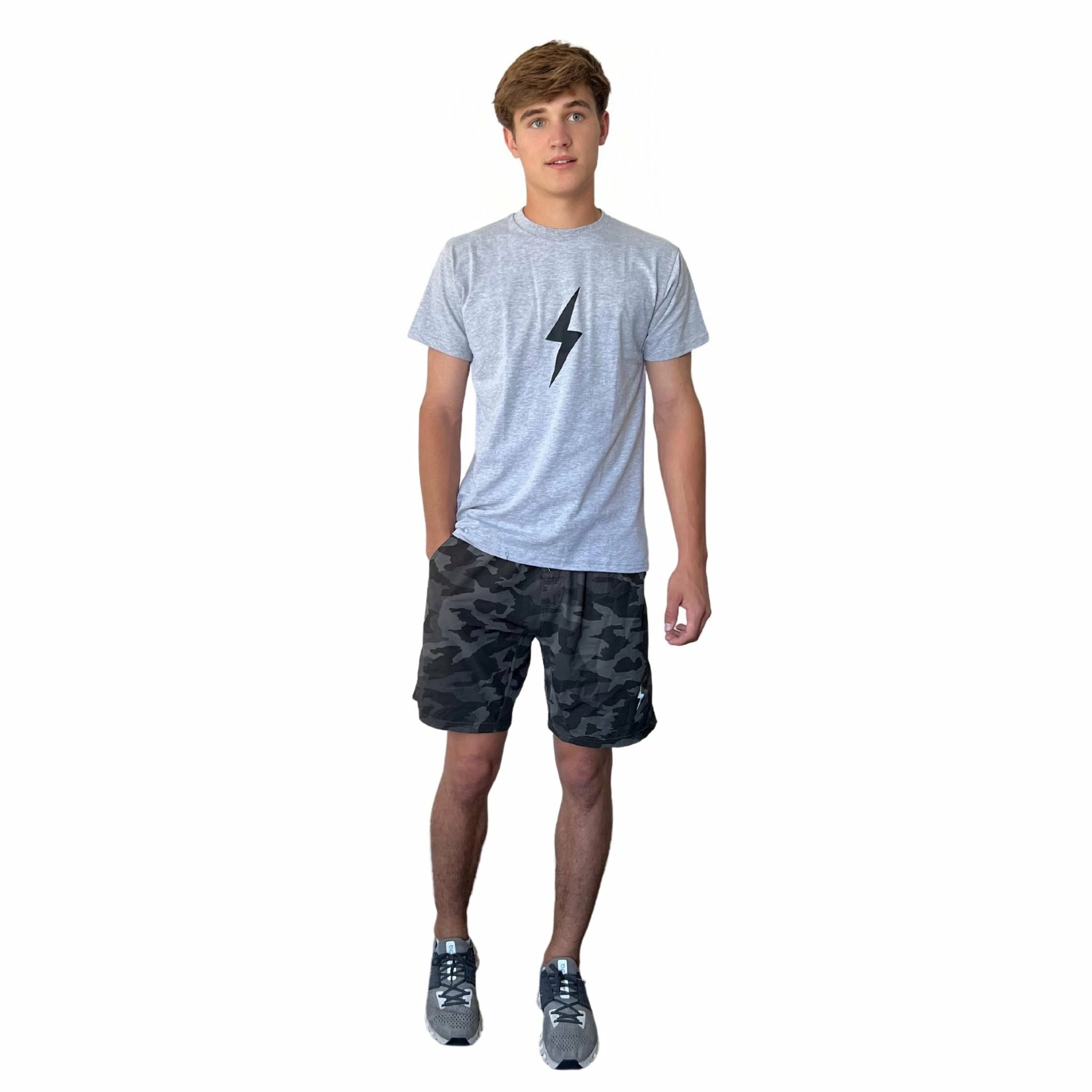 “Be Better” with this heather grey “PREMIUM PRO” bolt t-shirt made with our cotton-based, proprietary four-way stretch material. They’re perfect for pre-game, workouts, hanging out, and every activity in between.