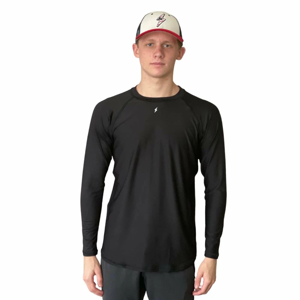 This lightweight, moisture-wicking, 4-way stretch performance t-shirt is BRUCE BOLT’s first attempt at performance apparel with form-fitting, 4-way stretch fabric and a reflective BOLT logo just under the collar.