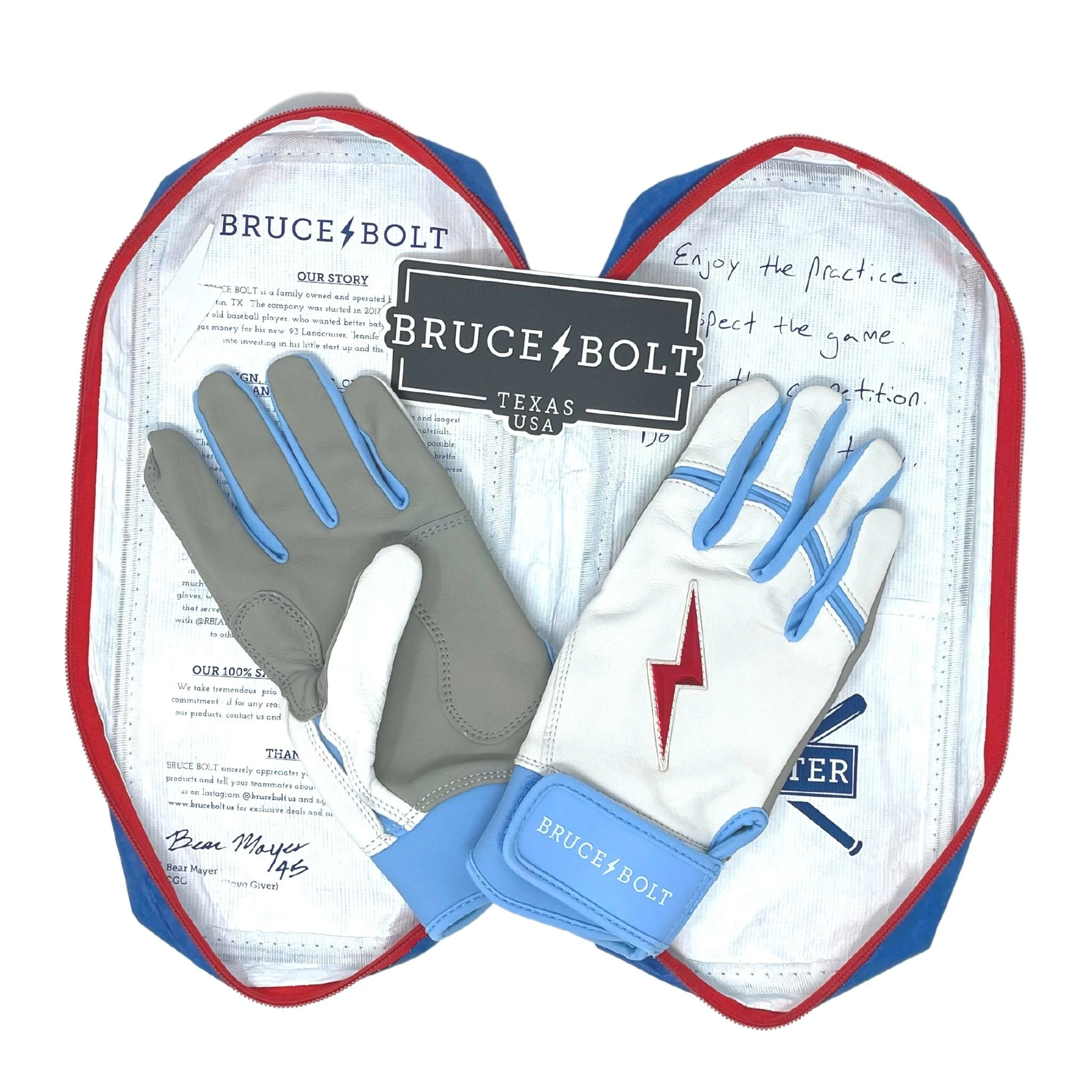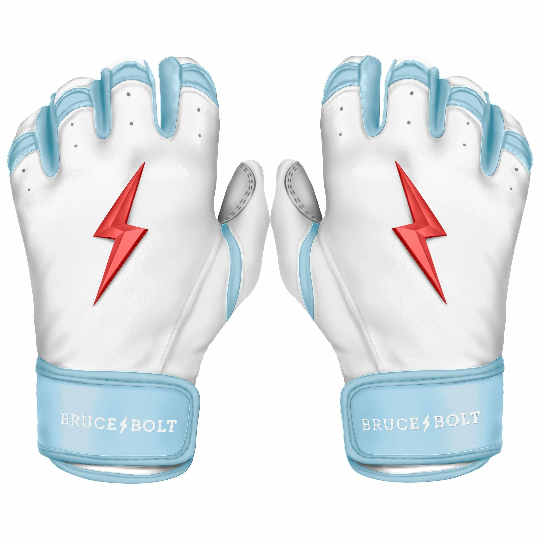 HIGHEST QUALITY, MOST DURABLE BATTING GLOVE IN BASEBALL: Each pair of BRUCE BOLT batting gloves are handmade by skilled craftsmen using only the highest quality 0.9mm Cabretta leather and stitching techniques which makes our gloves buttery soft but more durable than any other glove on the market.