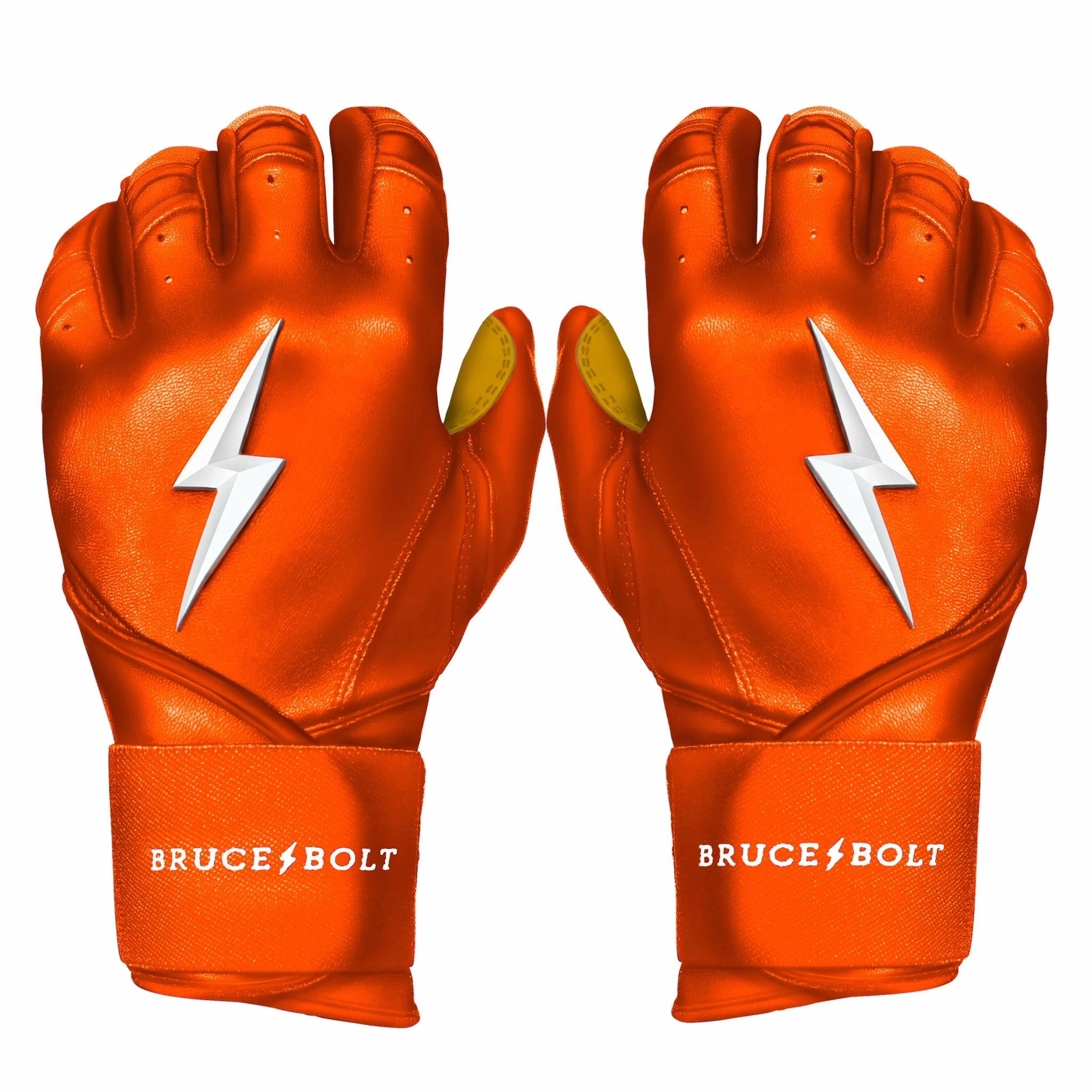 HIGHEST QUALITY, MOST DURABLE BATTING GLOVE IN BASEBALL: Each pair of BRUCE BOLT batting gloves are handmade by skilled craftsmen using only the highest quality 0.9mm Cabretta leather and stitching techniques which makes our gloves buttery soft but more durable than any other glove on the market.