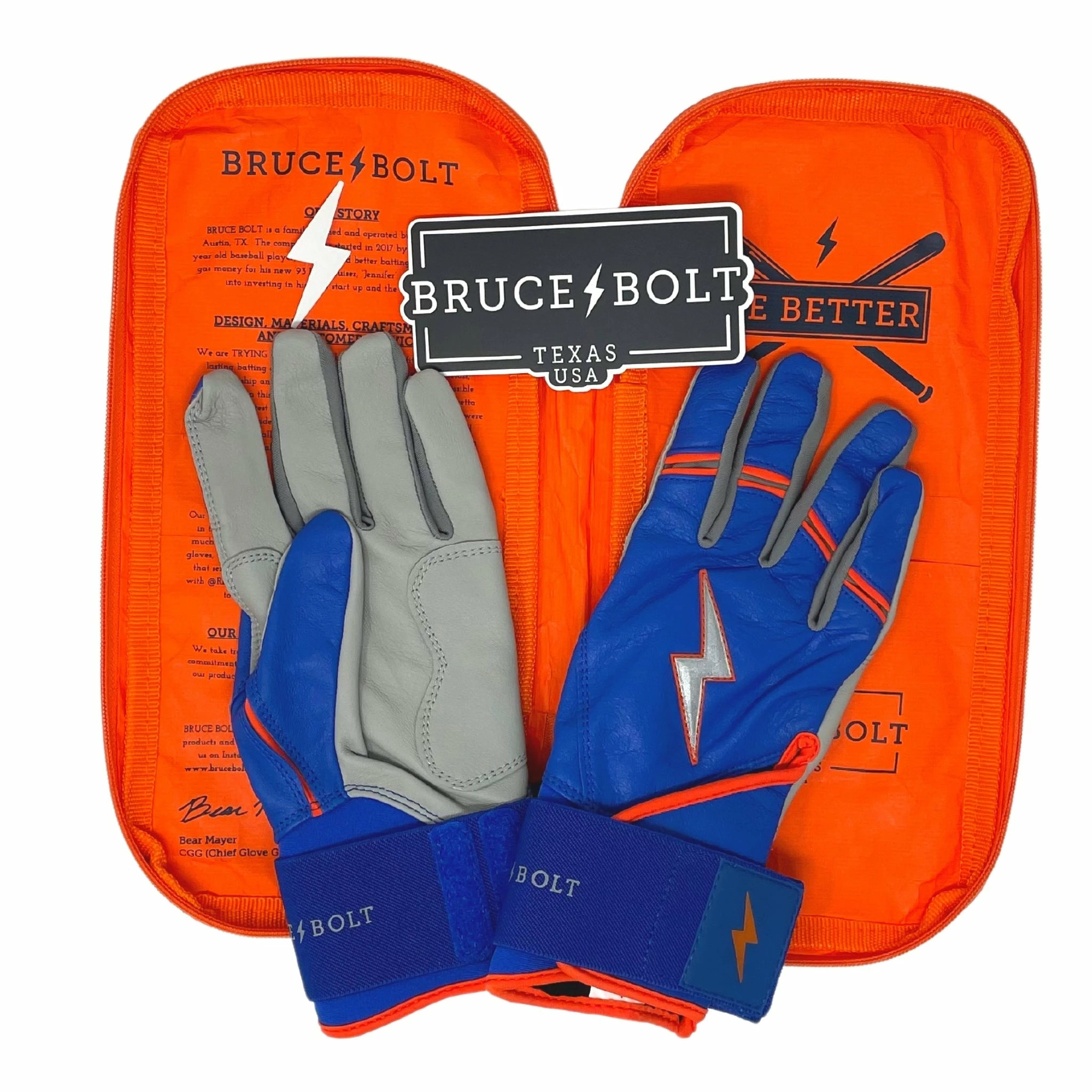 HIGHEST QUALITY, MOST DURABLE BATTING GLOVE IN BASEBALL: Each pair of BRUCE BOLT batting gloves are handmade by skilled craftsmen using only the highest quality 0.9mm Cabretta leather and stitching techniques which makes our gloves buttery soft but more durable than any other glove on the market.